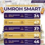 - Koper Premium 2 pcs (Bagasi dan Kabin) – Pakaian Jadi Pria (Kurta) – Gamis Wanita dan Jilbab – Tas Slempang – Kain Ihram – Payung – Tali Pinggang – Set Pemotong kuku – ID Card – Tumbler/botol minum – Buku Panduan Umroh – Dompet– Spray Wudhu