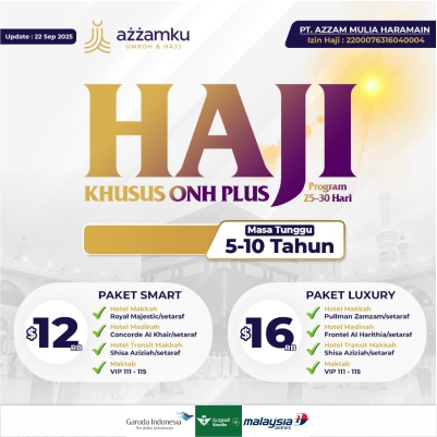 - HARGA FINAL HAJI KHUSUS di informasikan di tahun keberangkatan setelah kementrian haji mengumumkan secara resmi.